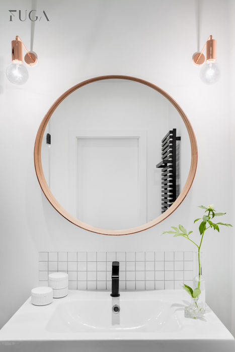 Właścicielką mieszkania na Mokotowie jest połówka pracowni Fuga – Antonina oraz jej mąż. Mieszkanie z założenia miało być przestrzenią na 5-10 lat, a projektowane było "po godzinach" w dość krótkim czasie, ponieważ od zakupu mieszkania do oddania kluczy przez dewelopera było bardzo mało czasu. Największym wyzwaniem w mieszkaniu było połączenie kuchni z jadalnią i salonem. 26-metrowa przestrzeń musiała pomieścić dużą, funkcjonalną kuchnię (właściciele uwielbiają gotować), która w płynny sposób przechodzi w jadalnię i salon. Świetnym rozwiązaniem okazały się płytki heksagonalne, które gęsto ułożone w kuchni rozsypywały się po pozostałej części mieszkania integrując ze sobą strefy.